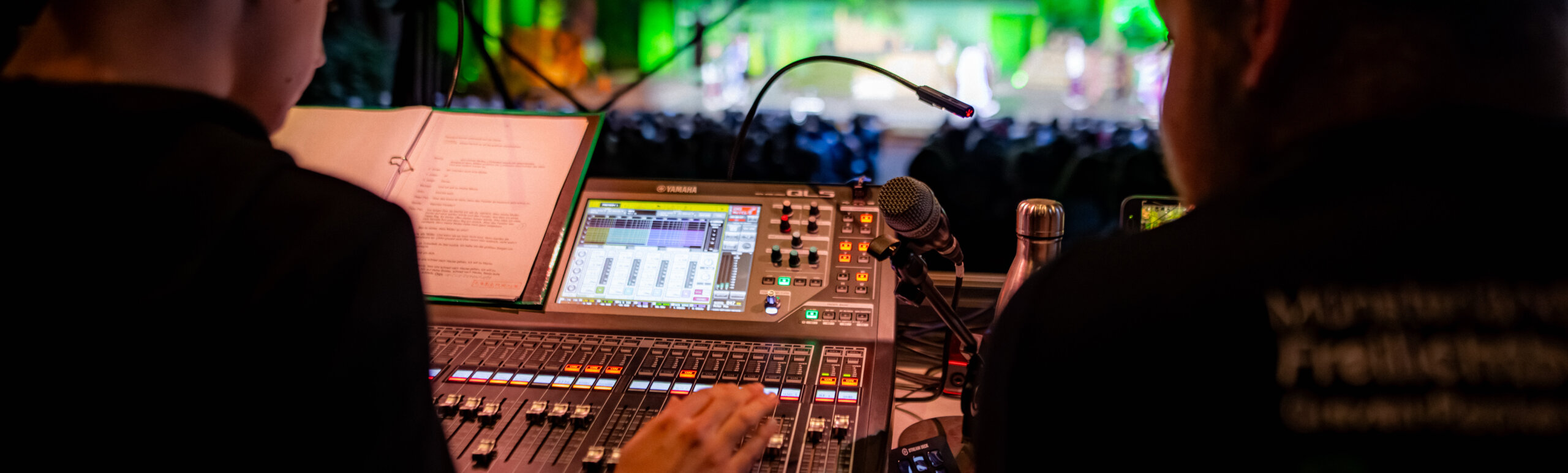 Unsere Technik sorgt dafür, dass jede Vorstellung hör- und sichtbar gelingt. Wir betreuen Ton, Licht und Effekte, vom Funkmikro bis zur Nebelmaschine, vom Verfolger bis zum Moving Light. Während der Aufführungen steuern wir die Show vom Pult aus und halten im Hintergrund alles am Laufen. Du hast Lust auf Veranstaltungstechnik – mit oder ohne Vorerfahrung? Dann mach mit im Technikteam!